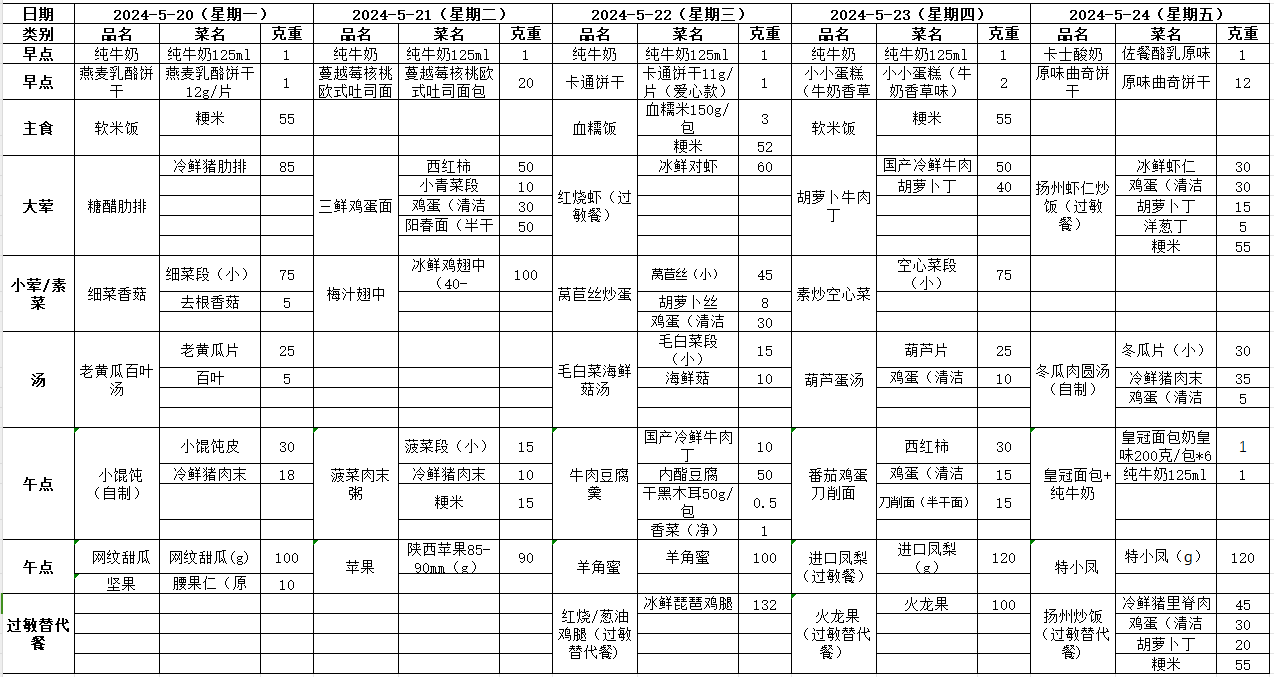 24.5.20-5.24幼儿园食谱克重表